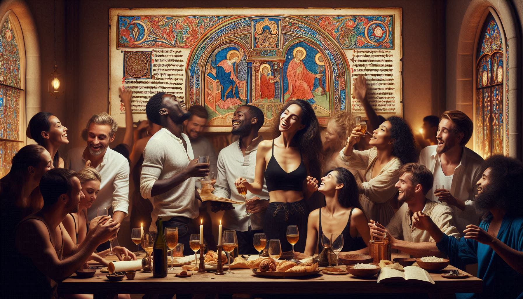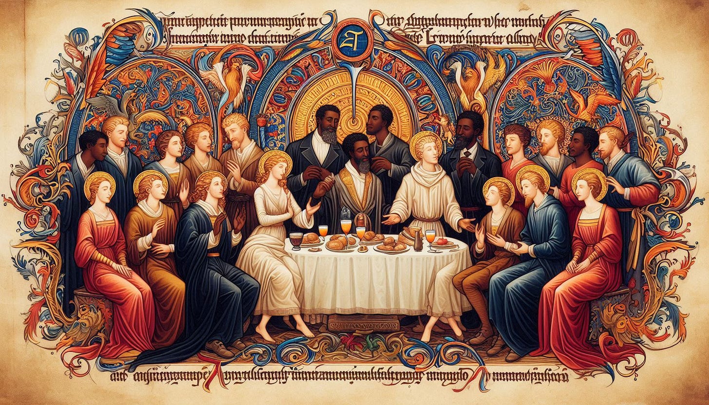 Jesus asks his hosts, in essence, to make their banquets public. Deuteronomy’s anticipated celebrations, after all, aren’t private but public. They’re organized around Israel’s households, Moessner points out, but the households must subordinate their own domestic felicity to the public good. The households’ celebrations, for instance, often include those outside the home. In fact, the celebrations themselves often occur outside the home “at the one place which the Lord shall choose.”7 These pilgrimages put the various strata of Israelite society—the rich and the poor, the blue bloods and the foreigners, the upright and the “sinners”—on a literally equal footing, as Chaucer’s account of a pilgrimage to Canterbury also puts his characters.
