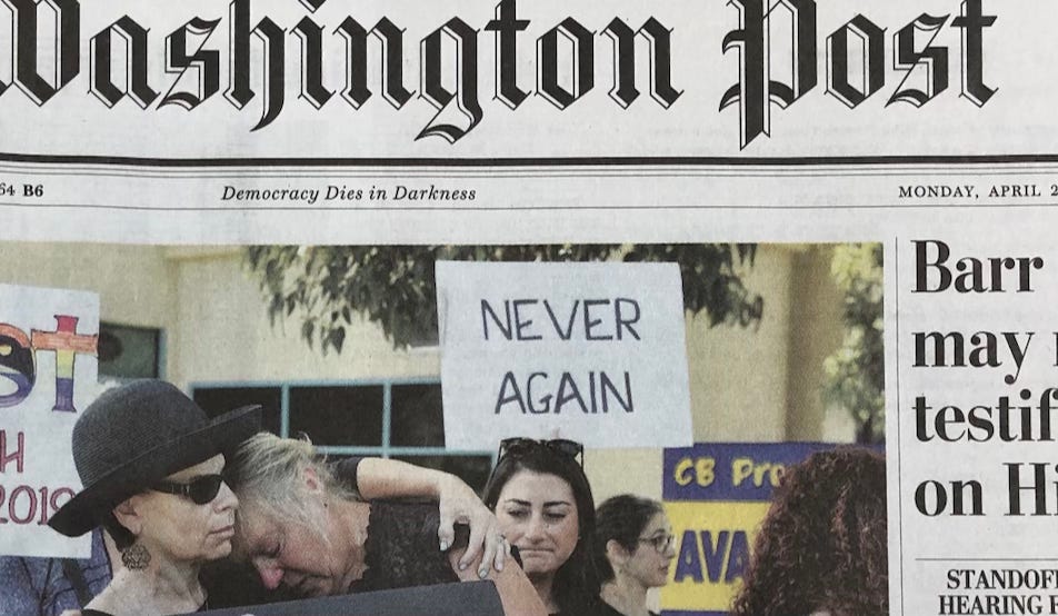 Above: detail from page 1 of the April 29, 2019 edition of The Washington Post.